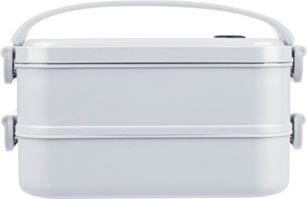 PP lunchbox met een totale capaciteit van 1.600 ml, verdeeld over twee lagen van 800 ml. Voorzien van een siliconen ventiel, geschikt voor gebruik in de magnetron, een gespsluiting en een siliconen draaggreep. Verpakt in bulk.