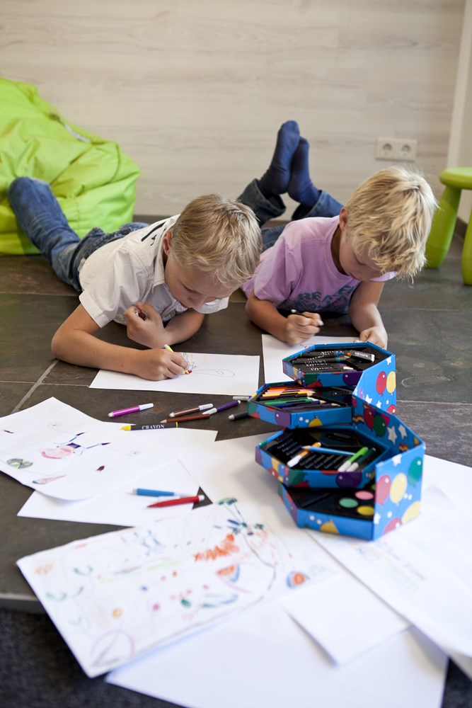 56-Delige kindertekendoos met roterende laden, bevat waskrijt, viltstiften, potloden,...meer