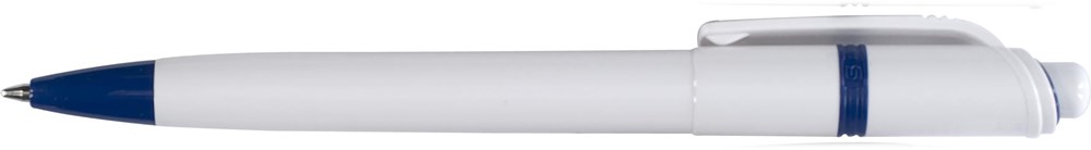 Stilolinea kunststof balpen, blauwschrijvend, met een witte tip en gekleurde accenten. Voorzien van Duitse Dokumental-inkt.