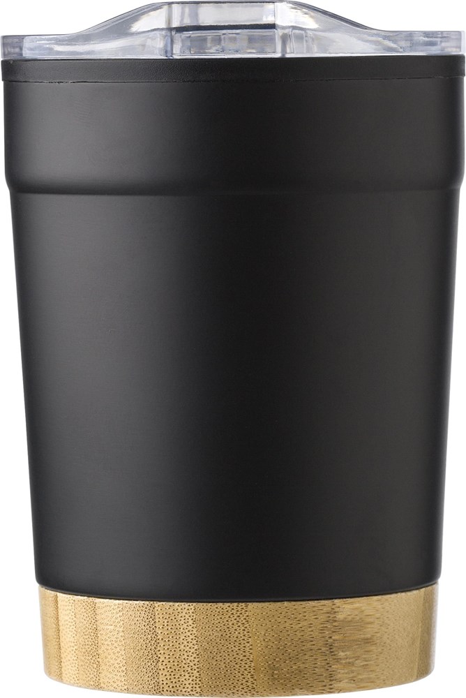RVS reisbeker (300 ml) met PP binnenzijde en PS deksel. Met bamboe bodem die met de hand gewassen...meer