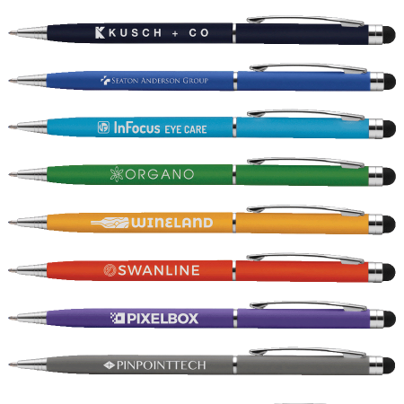 De BIMINI Stylus balpen soft touch combineert een aangename grip met een stylusfunctie voor touchscreens en is te personaliseren met lasergravering.