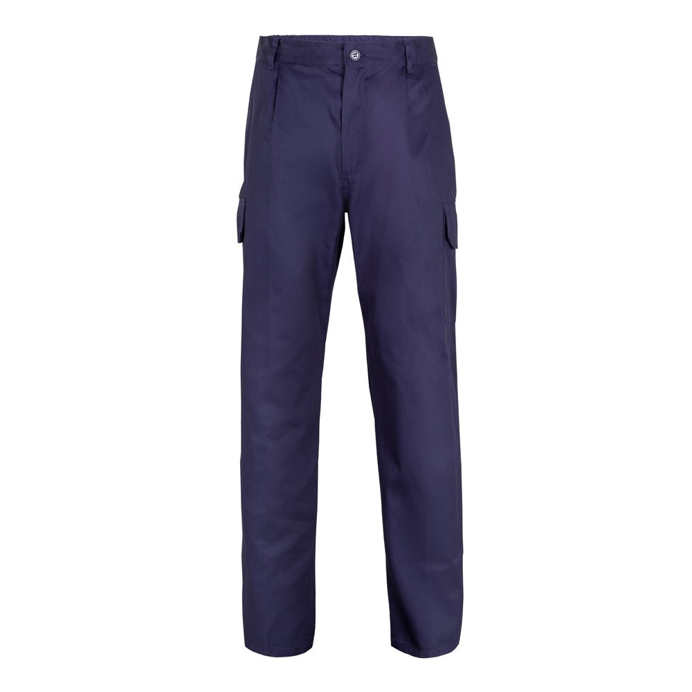 Keperstof broek met meerdere zakken (200g/m²), van katoen (35%) en polyester (65%). Met elastische tailleband en zes zakken (2 Franse zakken, 2 zijzakken en 2 achterzakken). Maat: 34, 36, 38, 40, 42, 44, 46, 48, 50, 52, 54, 56, 58, 60, 62, 64