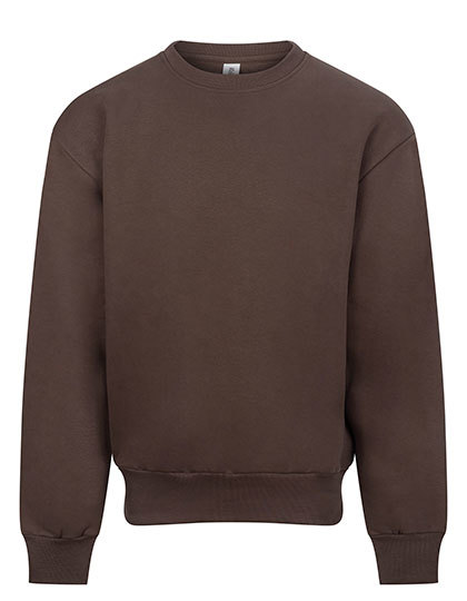 Geregenereerde katoen / Gerecycleerd polyester | 100% katoenen stof | Oversized pasvorm | zwaargewicht | Ronde halsuitsnijding | Geribbelde kraag, manchetten en zoom | Ingezette mouwen | Geborstelde fleece aan de binnenzijde | Afscheurbaar etiket