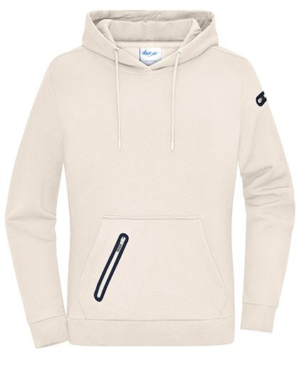 Hoogwaardige interlockstof | Aangename mix van biologisch katoen, gerecycleerd polyester en elastaan | Technische details | Kangoeroezak met extra zak met rits | Zak met rits op linkermouw | Zakken met rits en bies van modieuze band | Licht getailleerd