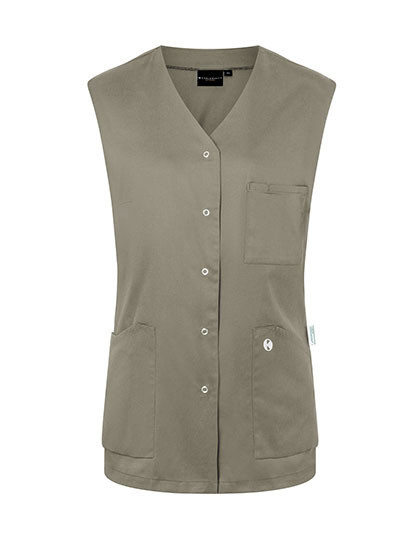 Keperbinding, 150 g/m². | Kleurvast, gemakkelijk te onderhouden, duurzaam | Damestuniek zonder mouwen en met V-hals | Polyester inhoud gemaakt van gerecycleerd plastic | Bijzonder licht materiaal voor aangenaam draagcomfort tijdens dagelijkse werkzaamheden | Wasbaar op 95 ° C | licht op maat | Twee opgestikte zijzakken met verborgen binnenzak aan de rechterkant | Een lus in de zijzak om een sleutelhanger te bevestigen | Opgestikte borstzak aan de linkerkant met pennenvak | Vijf drukknopen in het midden om de tuniek te sluiten | Green Button-etiket, www.g-k.eu/karlowsky