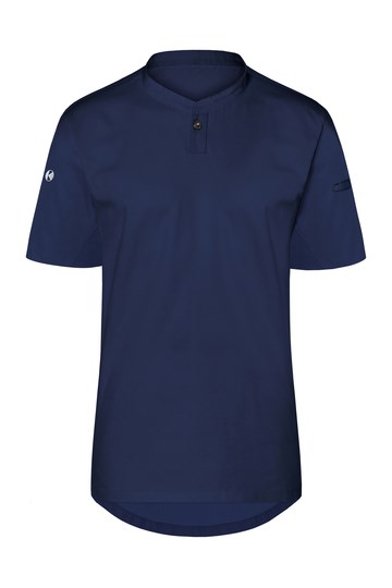 Voorkant: keper; achterkant: jersey piqué, ademend en vochtafvoerend | Modern werkhemd met korte...meer