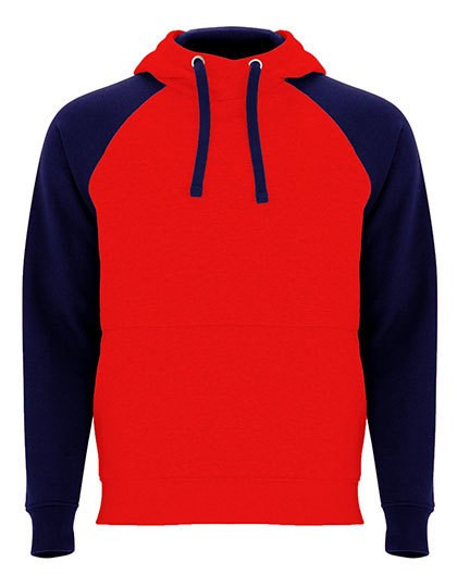 Tweekleurig uniseks sweatshirt | Kap met gekruiste kraag en metalen ogen | Kap met single-jerseyvoering | Trekkoord en raglanmouwen in contrasterende kleur | Kangeroezak | 1x1 geribbeld gebreid materiaal met elastaan en zoom | Geborsteld fleece voering | Afscheurbaar etiket