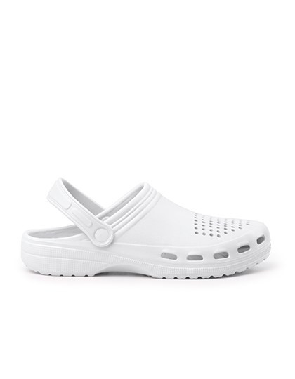 Klomp die maximaal comfort biedt en ventilatiegaten heeft | Bevestigingsstrip met twee posities | Slipvaste zool