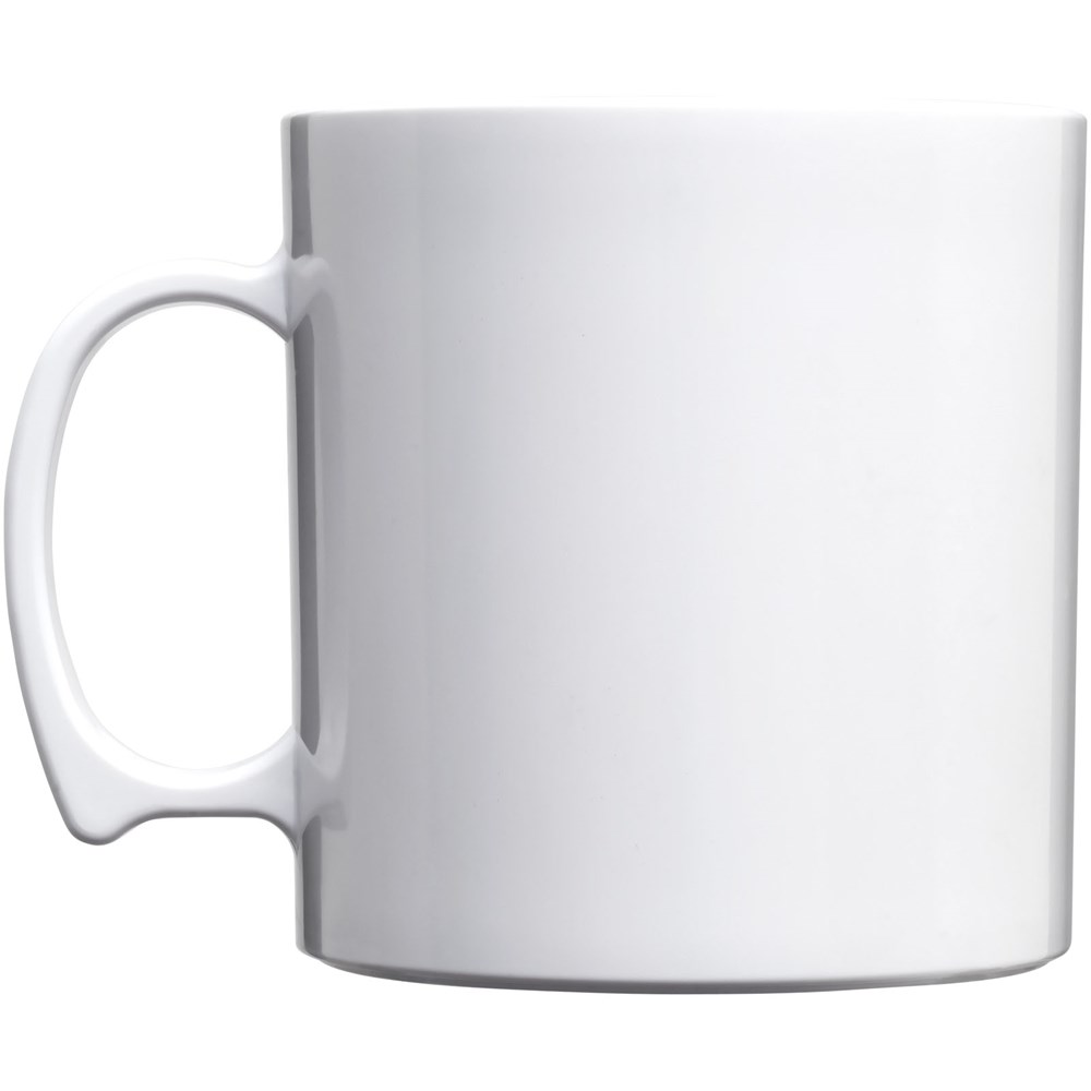 Duurzame, enkelwandige kunststof mok. Volume 300 ml. Gemaakt in het Verenigd Koninkrijk.