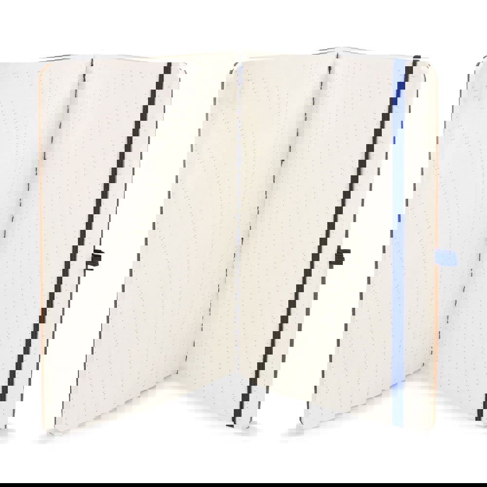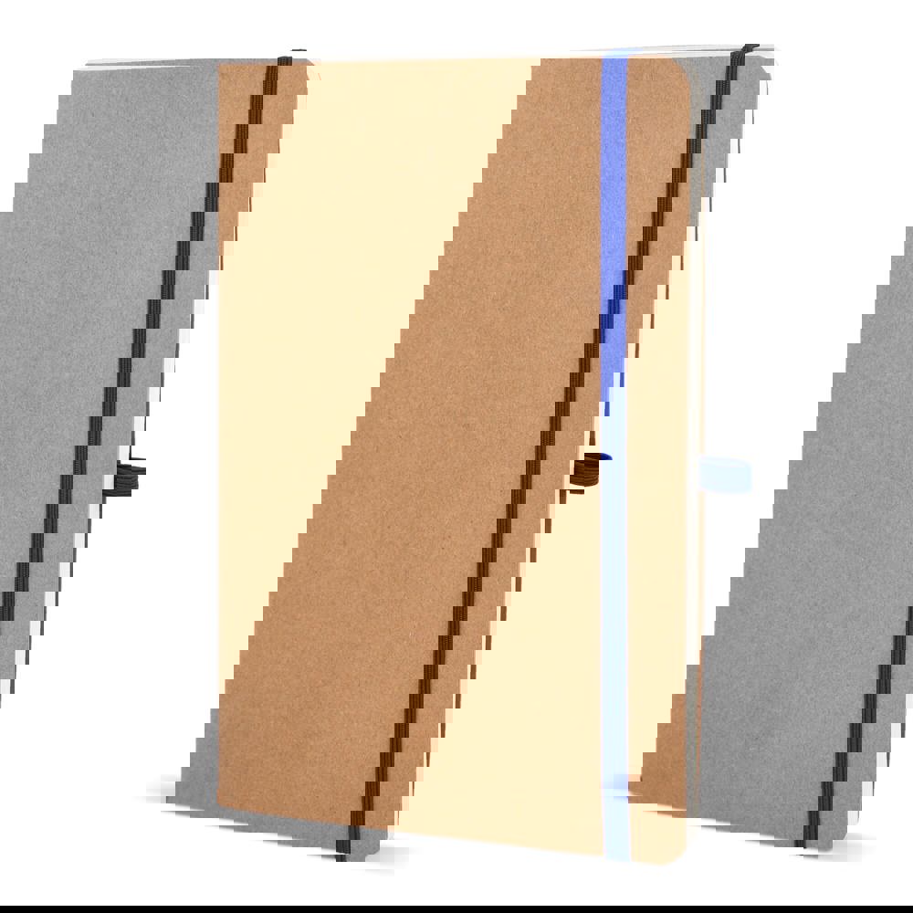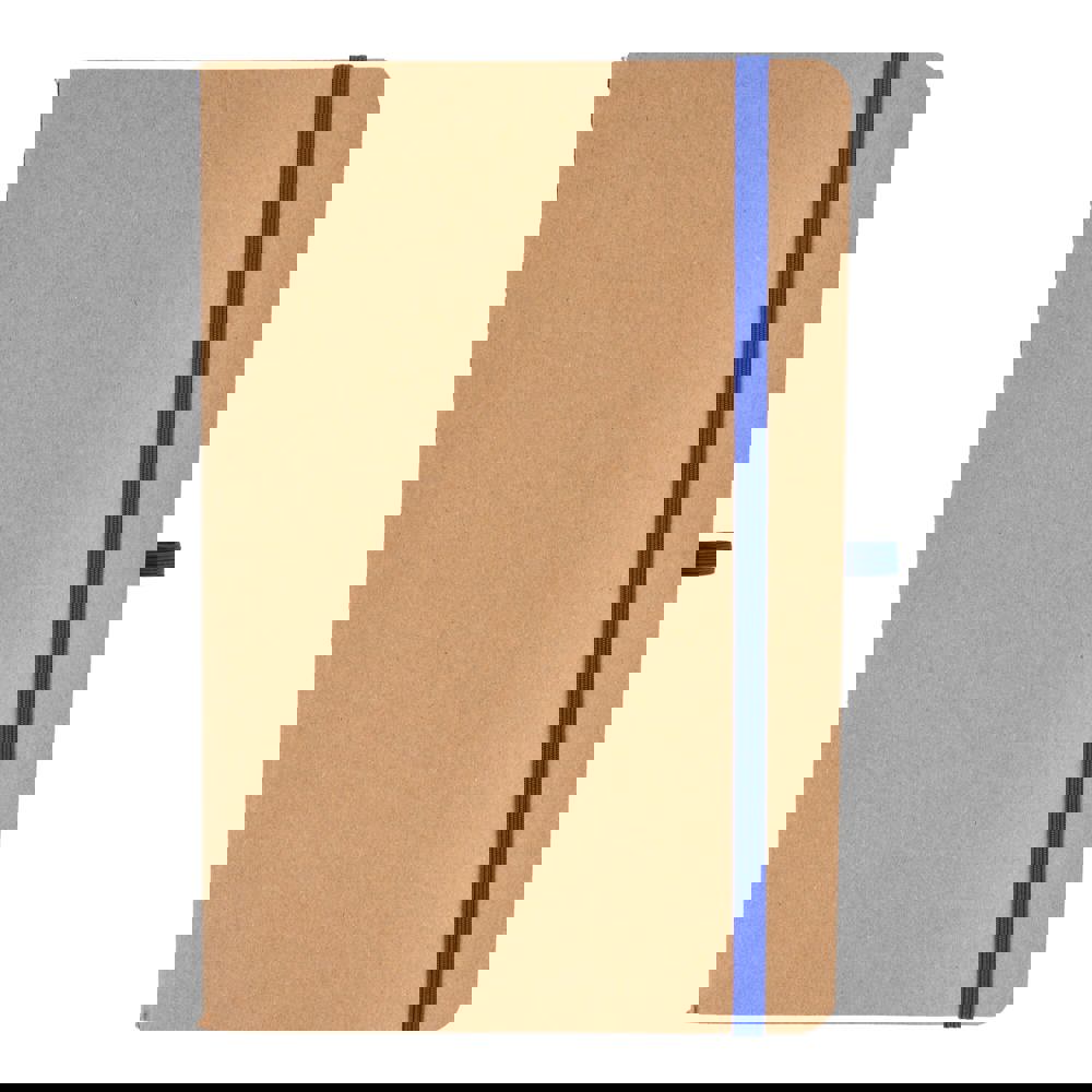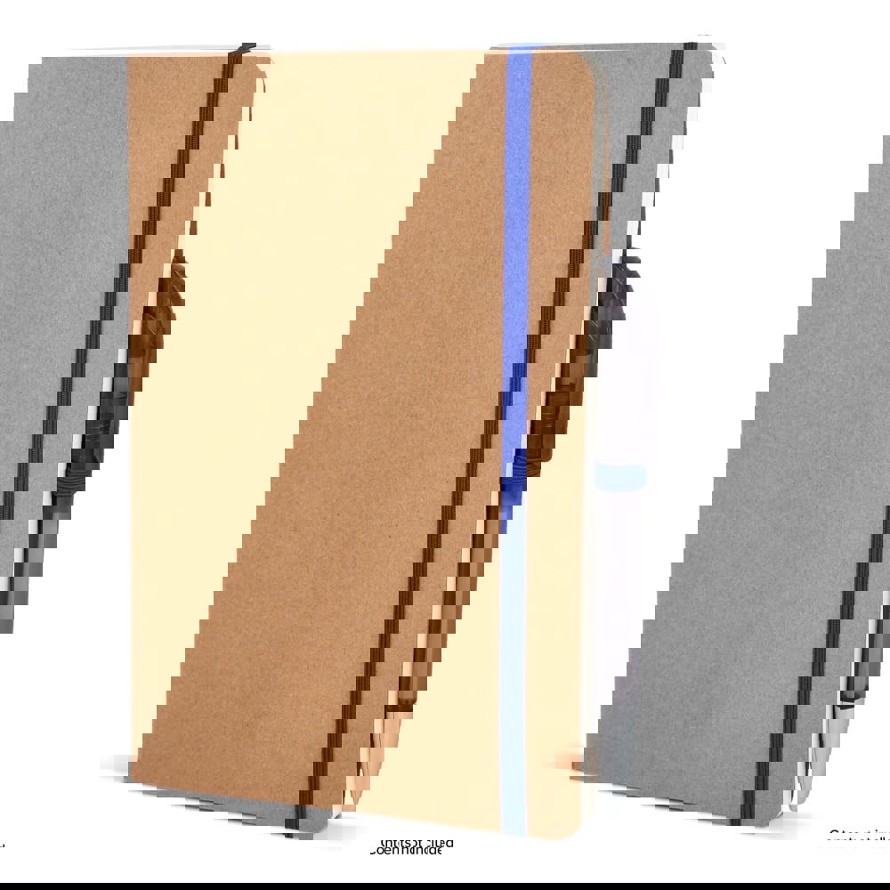 A5-notitieboek met een zachte kaft van kraftpapier, afgeronde hoeken, gekleurde elastische sluiting en pennenlus. Het bevat 60 gelinieerde crèmekleurige vellen van FSC-gecertificeerd papier. Een praktische en natuurlijk ogende optie voor dagelijkse aantekeningen.