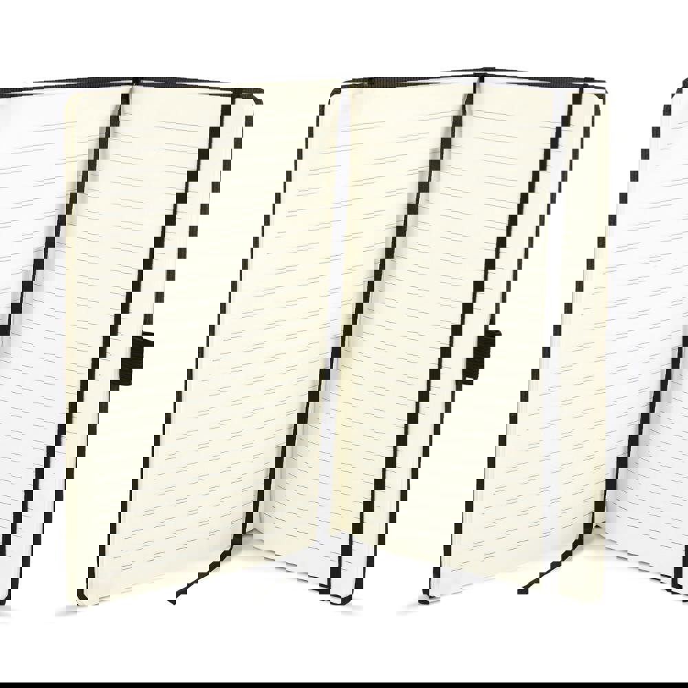 A5-notitieboek van thermo PU-leer met een moderne, premium uitstraling. Voorzien van een elastische sluiting, lintmarker en pennenlus. Het bevat 80 gelinieerde crèmekleurige pagina’s van FSC-gecertificeerd papier.