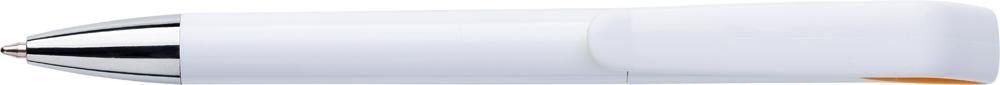 Kunststof balpen met gekleurde elementen, blauwschrijvend, met de clip in de vorm van een geometrische zwanenhals, met draaimechanisme.
