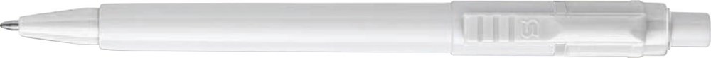 Stilolinea kunststof balpen Baron, blauwschrijvend, met een witte tip en een gekleurde clip. Inclusief jumbo vulling. Voorzien van Duitse Dokumental-inkt.