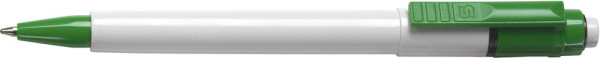 Stilolinea kunststof balpen Baron, blauwschrijvend, met een witte tip en een gekleurde clip. Inclusief jumbo vulling. Voorzien van Duitse Dokumental-inkt.