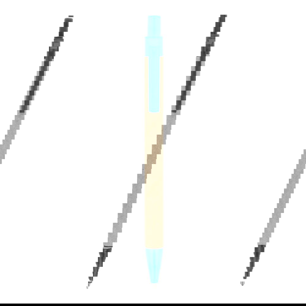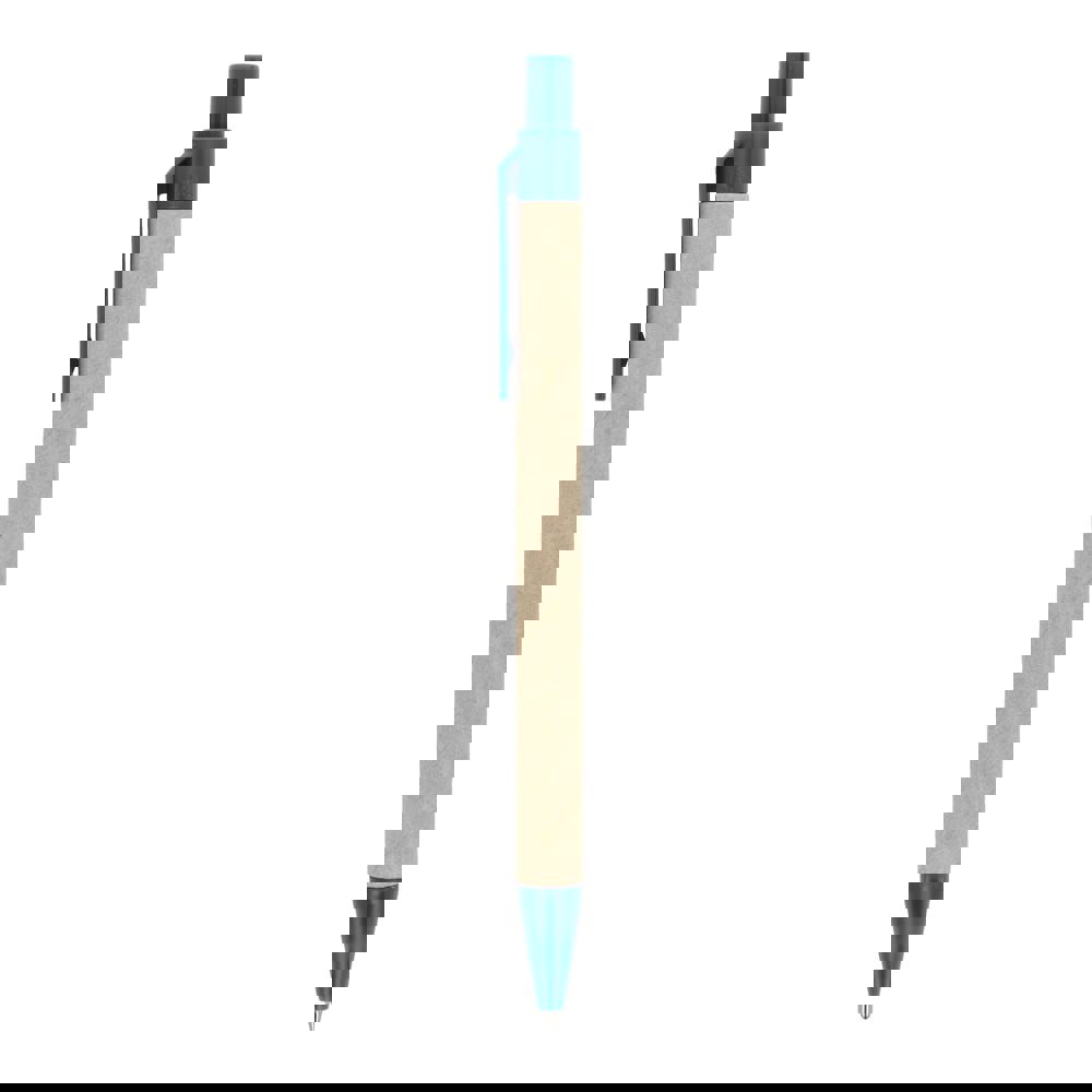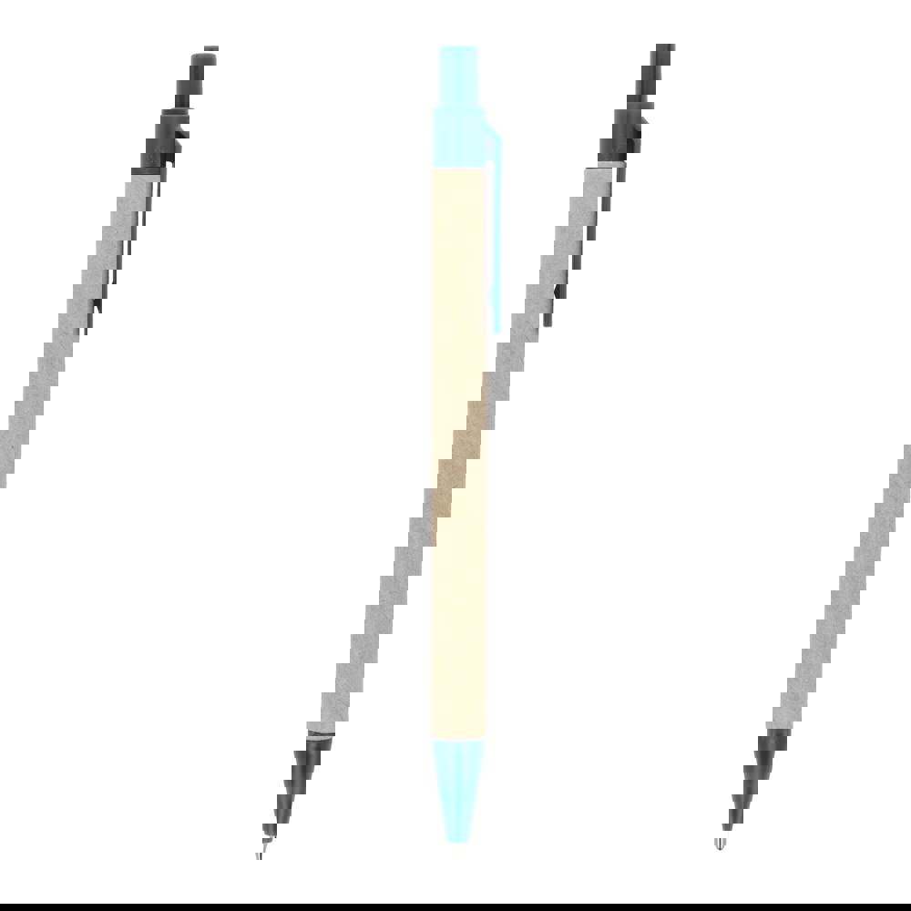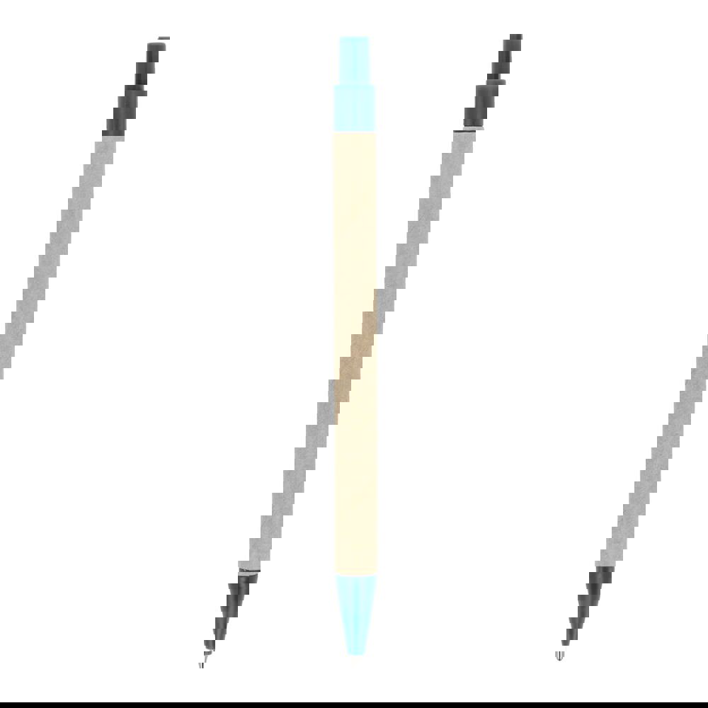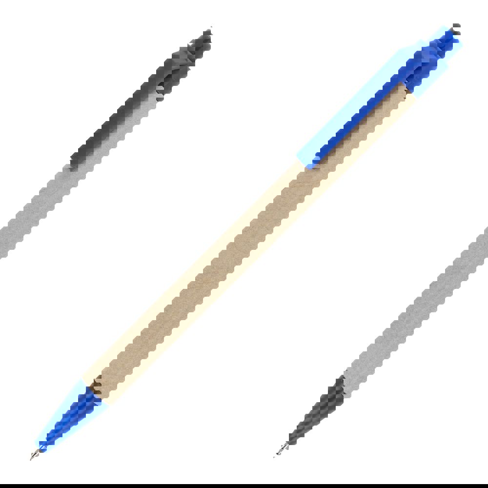 Balpen van papier met gekleurde kunststof onderdelen van gerecycled materiaal. Met blauwe schrijvende vulling.