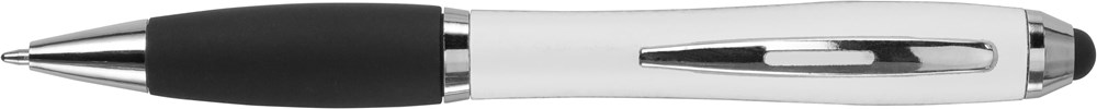 Multifunctionele kunststof balpen, zwartschrijvend, met zwart rubberen grip en gekleurde houder. Ook te gebruiken als capacitieve pen voor uw 'touch screen' schermen.