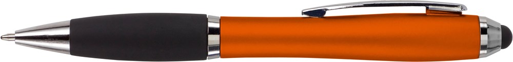 Multifunctionele kunststof balpen, zwartschrijvend, met zwart rubberen grip en gekleurde houder. Ook te gebruiken als capacitieve pen voor uw 'touch screen' schermen.