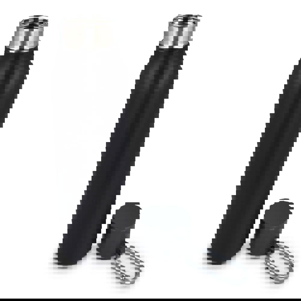 Stevige thermosfles van 600 ml met matte afwerking. De dop heeft een karabijnhaak om hem aan je tas te bevestigen en gemakkelijk mee te nemen. Per stuk verpakt in een giftbox.