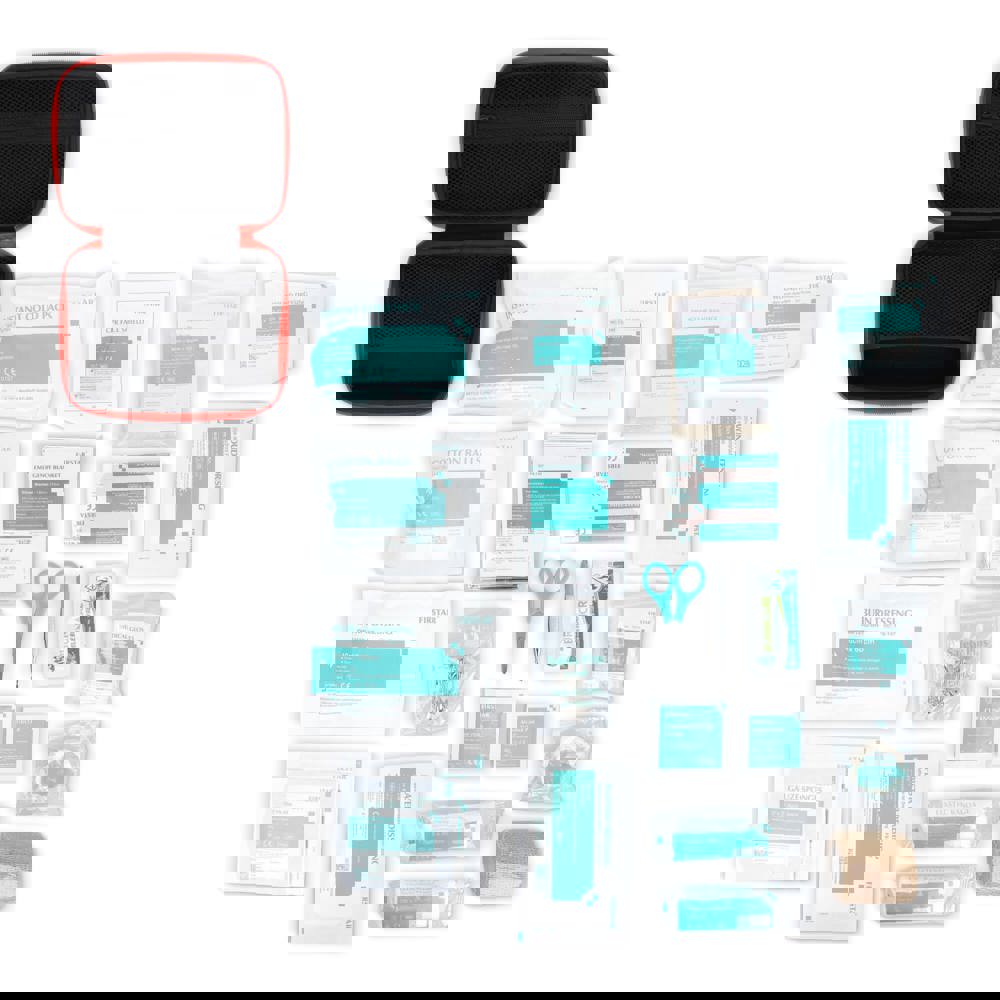Deze uitgebreide EHBO set zit in een duurzame EVA-etui en voldoet aan Europese normen. Ideaal voor werkplekken, outdoor-activiteiten, reizen of algemene noodgevallen. Bevat een breed scala aan materialen voor wondzorg, brandwonden en andere incidenten. Inhoud: 2 × non-woven sponzen 2" × 2" 4-laags (5 stuks/pack), 2 × burn dressings 40 × 60 cm, 2 × non-adherente pads 5 × 7.5 cm, 4 × alcoholpads, 5 × pleisters 72 × 19 mm, 4 × reinigingsdoekjes, 2 × burn gel sachets, 1 × schaar, 1 × pincet, 2 × adhesive island dressings 6 × 10 cm, 1 × CPR face shield, 2 × gauze sponges 2" × 2" 8-laags (2 stuks/pack), 2 × gauze sponges 3" × 3" 12-laags (2 stuks/pack), 1 pack × 10 veiligheidsspelden, 1 × driekantverband 90 × 90 × 127 cm, 2 × elastisch verband 7.5 × 450 cm, 1 × nooddeken 130 × 210 cm, 1 × medische handschoenen (2 stuks), 1 × instant cold pack 100 g, 1 × medische tape 1.25 × 9 m, 1 pack × 10 wattenbollen, 1 × cohesief verband 5 × 450 cm.