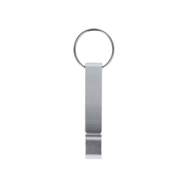 Aluminium sleutelhanger met gecombineerde fles- en blikopener. Lichtgewicht, duurzaam en ideaal voor dagelijks gebruik.