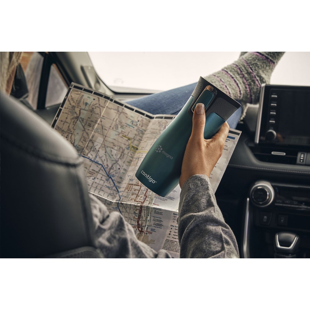 Dubbelwandige, vacuümgeïsoleerde Contigo® thermosbeker met RVS binnenwand. Met AUTOSEAL™-technologie (100% mors- en lekvrij ontwerp) en extra veiligheidssluiting. De drinkopening sluit automatisch na elke slok. De THERMALOCK™-technologie houdt dranken tot 12 uur koud of tot 5 uur warm. Enkel het deksel is vaatwasserbestendig (in het bovenste rek plaatsen). De beker met de hand afwassen. Inhoud 470 ml. VOORRAAD INFORMATIE: Tot 1.000 stuks beschikbaar binnen 10 werkdagen. Uitzonderingen voorbehouden. Contigo: Dé uitblinker in kwaliteit, vormgeving en technologie. Direct herkenbaar aan de strakke en stijlvolle vormgeving, stevig en sterk. De innovatieve waterflessen en thermosbekers zijn geurloos, smaakvrij en BPA-vrij. De drinkflessen zijn met één hand te bedienen en gegarandeerd 100% lekvrij, dus overal en altijd te gebruiken. Met 2 jaar fabrieksgarantie.