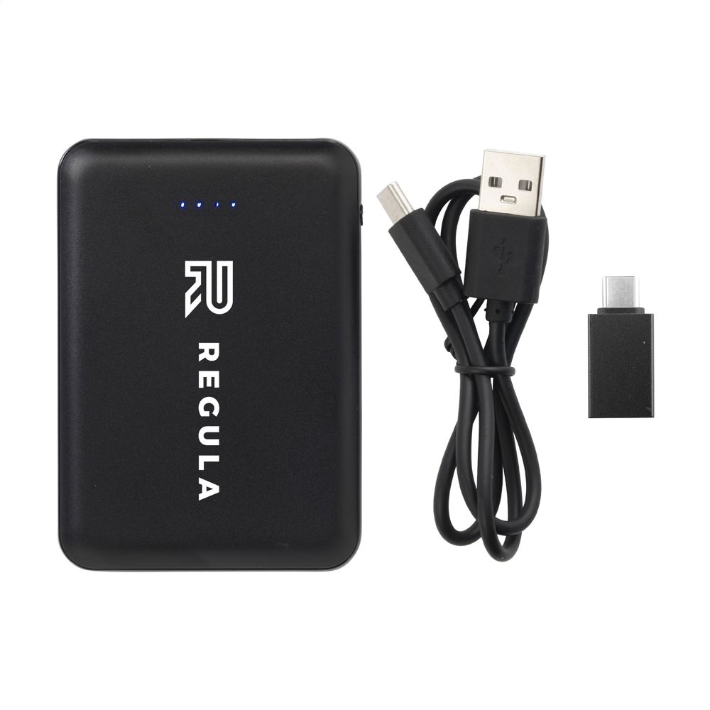 Kleine, lichte en zeer krachtige powerbank met ingebouwde lithium-polymeerbatterij (5.000 mAh). De behuizing is gemaakt van 100% RCS-gecertificeerd gerecycled ABS. Deze krachtpatser past gemakkelijk in je broekzak waardoor je hem comfortabel overal mee naar toe kunt nemen. Input 5V/2A. Dual output: 2 x 5V/2A. Inclusief USB-C oplaadkabel en gebruiksaanwijzing. RCS-gecertificeerd. Totaal gerecycled materiaal: 45%. Per stuk verpakt.