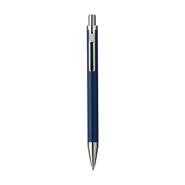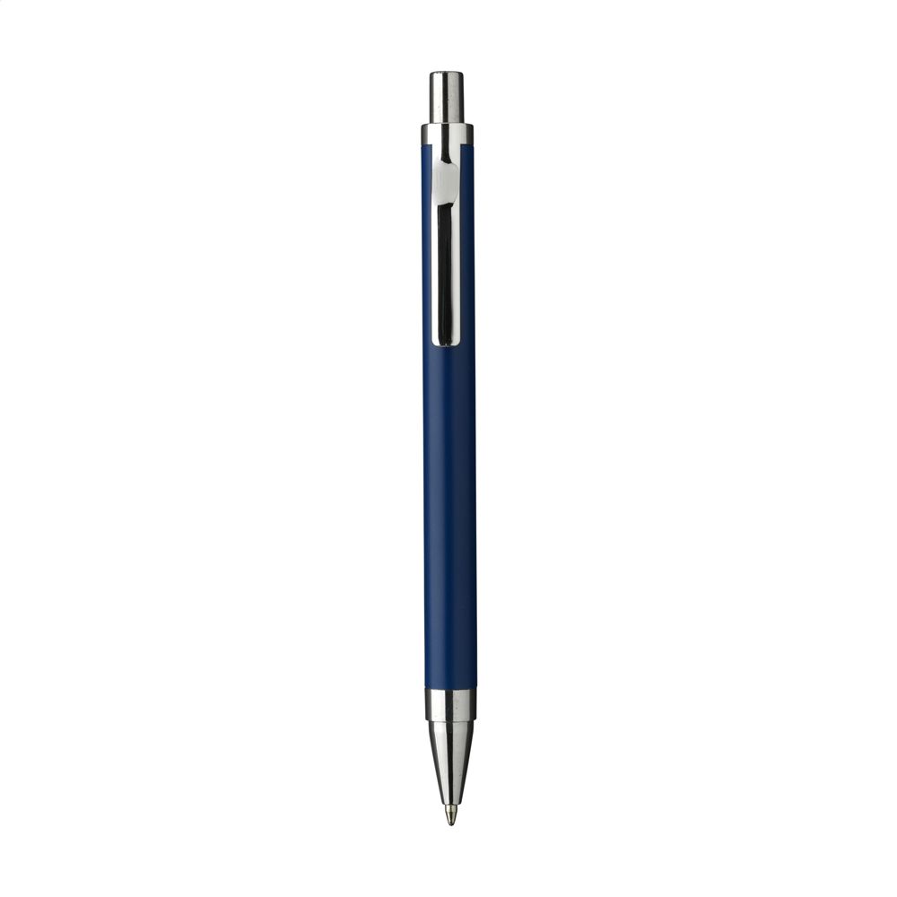 Modieuze, blauwschrijvende balpen met een houder van 100% gerecycled aluminium, afgewerkt met een matte finish. Met fraai gevormde metalen clip en een houder uit één geheel. RCS-gecertificeerd. Door het gebruik van gerecycled aluminium worden er minder nieuwe grondstoffen gebruikt tijdens de productie van dit product. Dit betekent minder energieverbruik en minder gebruik van water.