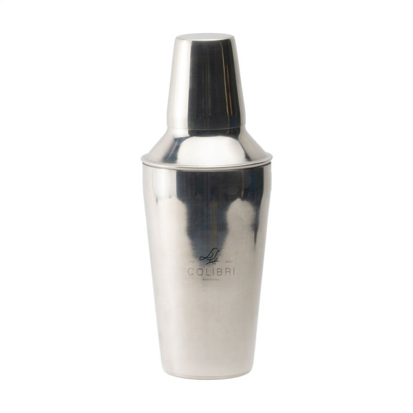 Cocktailshaker van glanzend RVS. Een strak ontwerp met makkelijke grip. De dop heeft een ingebouwde zeef voor het perfect uitserveren van de drankjes. Inhoud 550 ml.