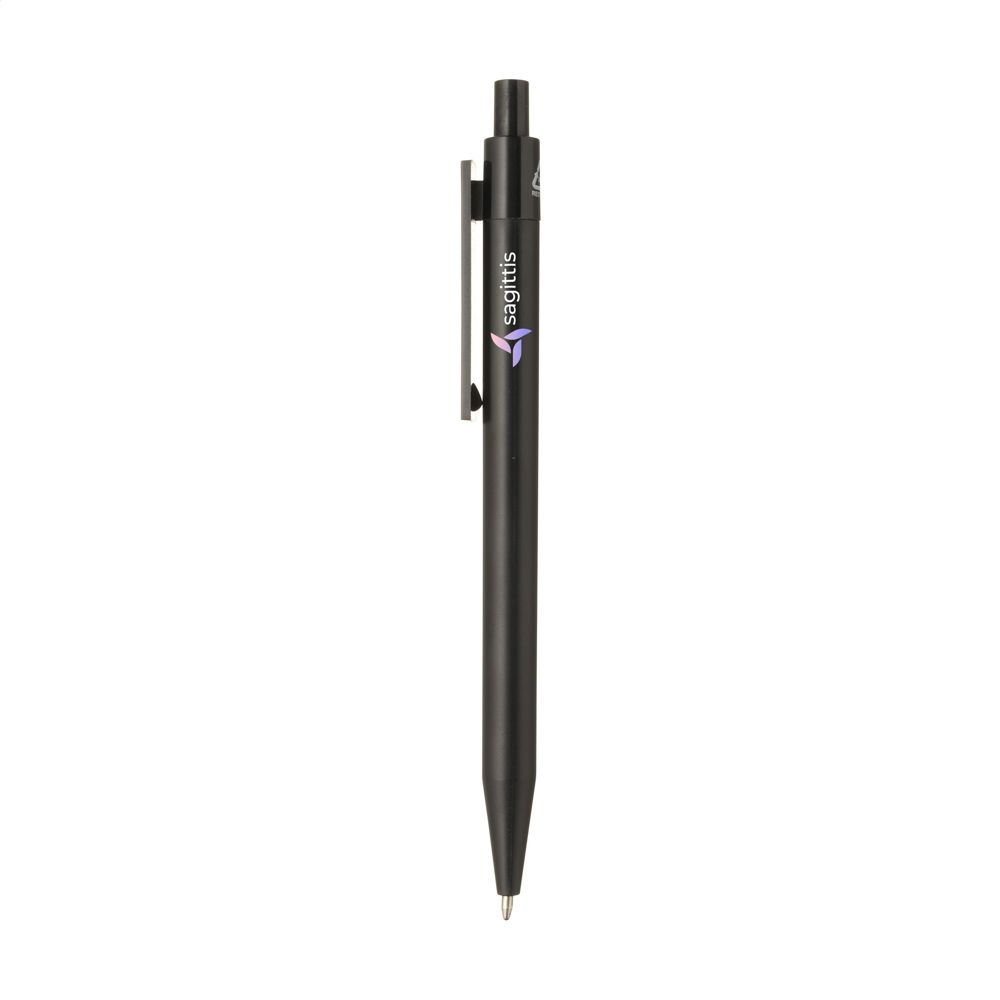 Blauwschrijvende balpen met een strak gevormde houder van 100% GRS-gecertificeerd gerecycled ABS. Met een royale clip voor een opvallende opdruk. GRS-gecertificeerd. Totaal gerecycled materiaal: 83%.