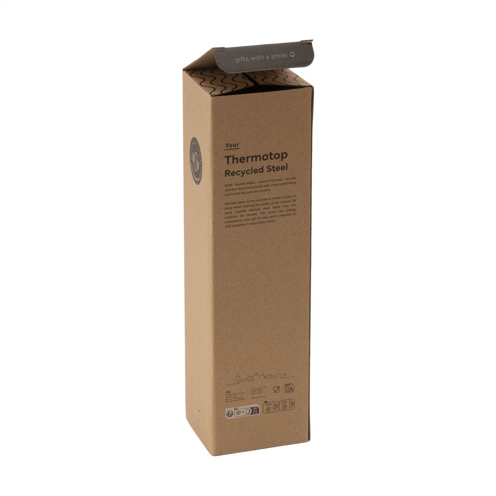 Dubbelwandige, vacuüm geïsoleerde thermosfles van gerecycled RVS. Onbreekbaar en ijzersterk. De vacuümruimte tussen de wanden isoleert de inhoud en houdt dranken lange tijd warm of koud. Met schroefdop/drinkbeker en handig schenksysteem met druksluiting. Lekvrij. Niet vaatwasserbestendig. RCS-gecertificeerd. Totaal gerecycled materiaal: 75%. Inhoud 750 ml. RVS kan vele malen gerecycled worden terwijl de kwaliteit van het materiaal grotendeels behouden blijft. Door het gebruik van gerecycled RVS worden minder nieuwe grondstoffen gebruikt. Dit betekent minder energieverbruik en minder gebruik van water. Per stuk verpakt.