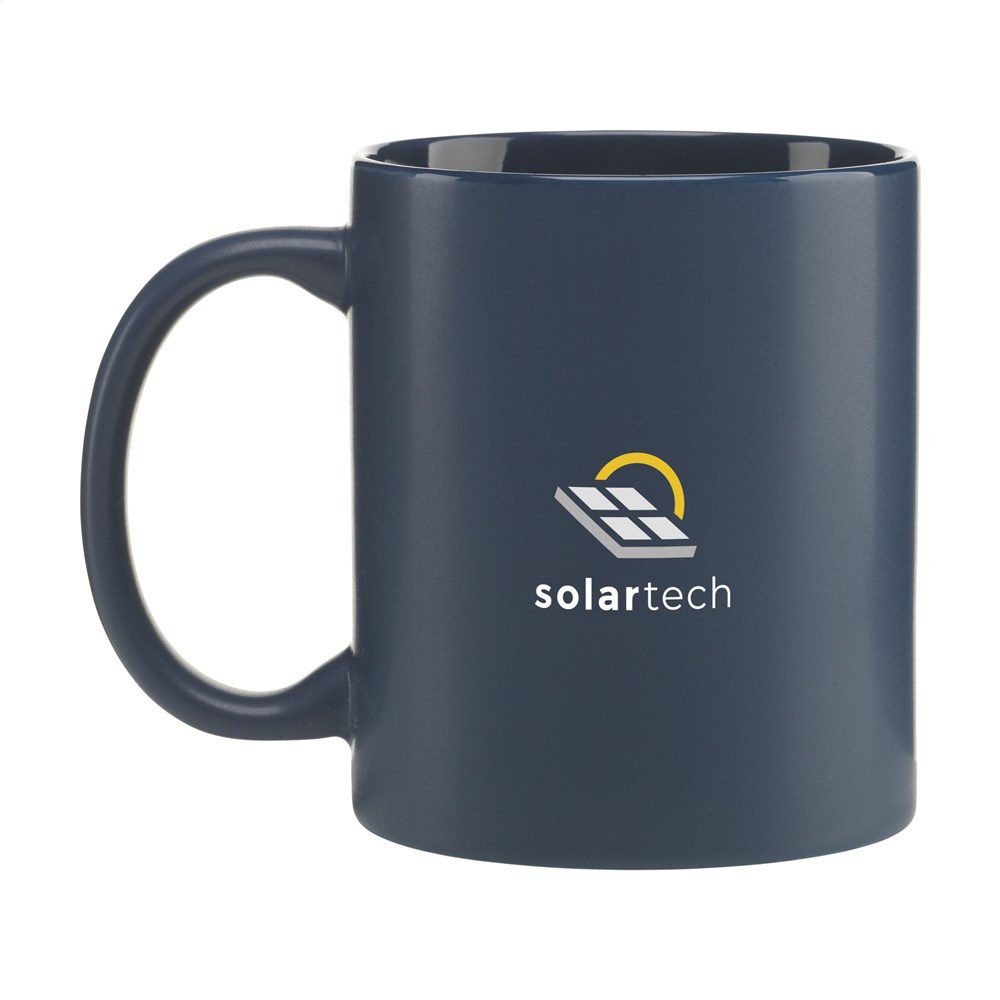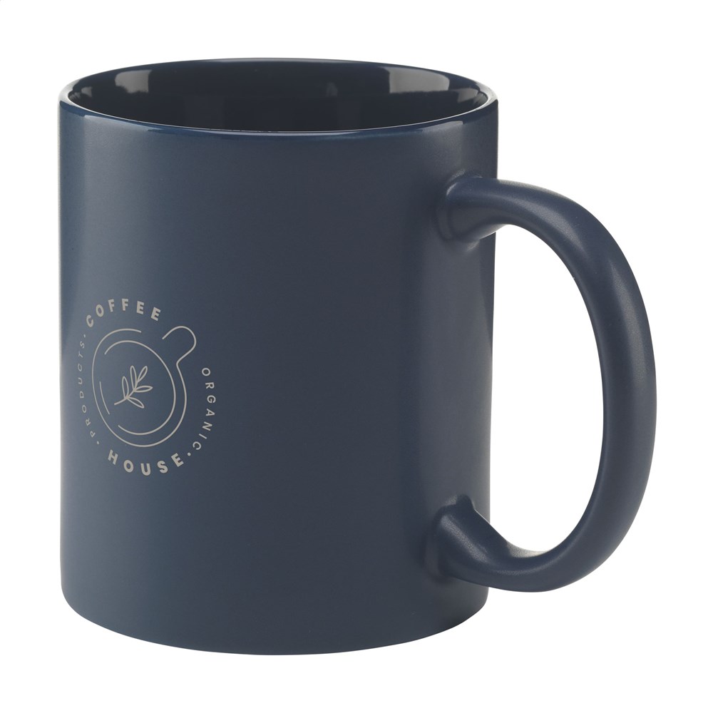 Mok van hoogwaardig keramiek met een matte buitenzijde en glanzende binnenzijde. Vaatwasserbestendig. De opdruk is vaatwasmachine getest en gecertificeerd: EN 12875-2. Inhoud 350 ml.