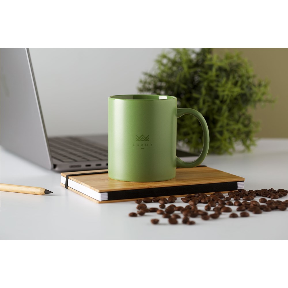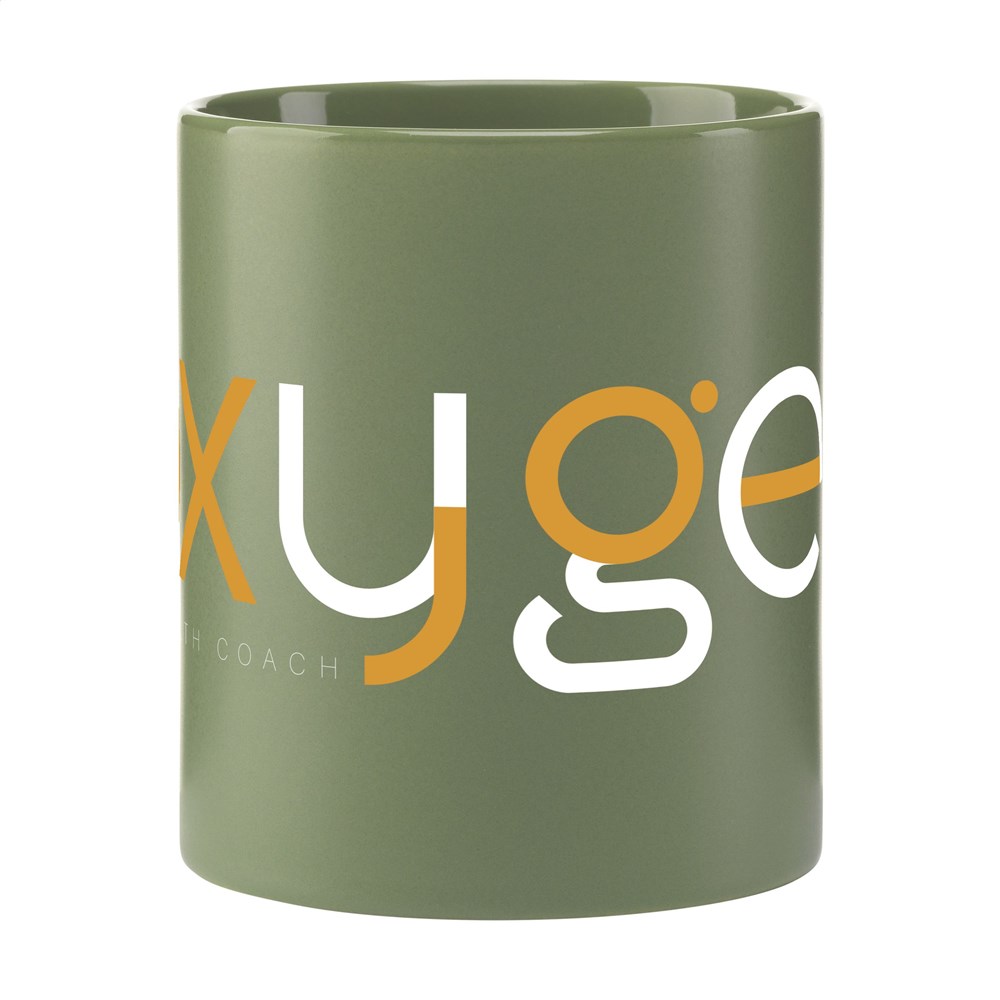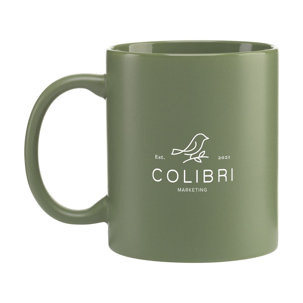 Mok van hoogwaardig keramiek met een matte buitenzijde en glanzende binnenzijde. Vaatwasserbestendig. De opdruk is vaatwasmachine getest en gecertificeerd: EN 12875-2. Inhoud 350 ml.