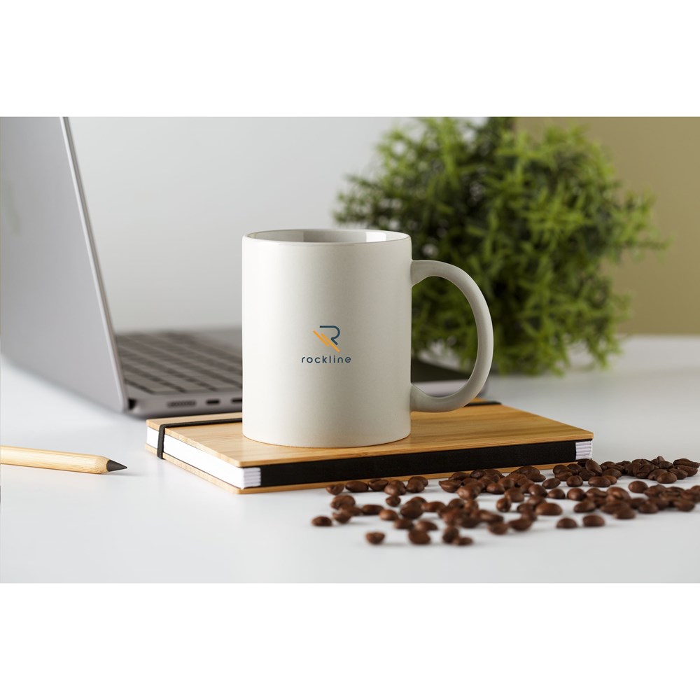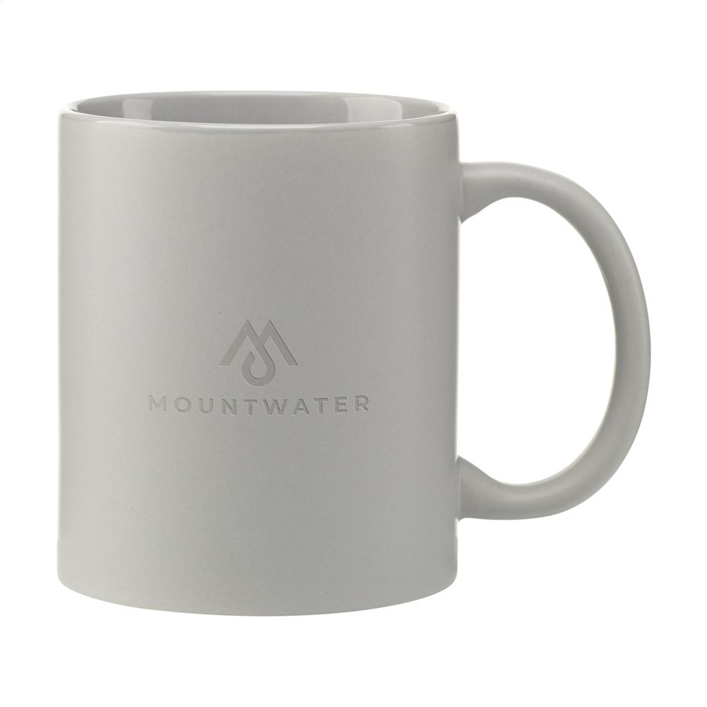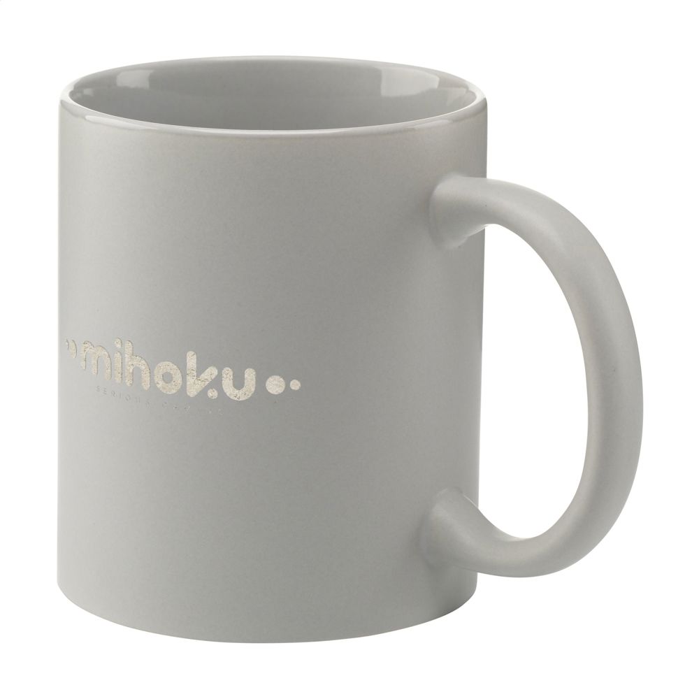 Mok van hoogwaardig keramiek met een matte buitenzijde en glanzende binnenzijde. Vaatwasserbestendig. De opdruk is vaatwasmachine getest en gecertificeerd: EN 12875-2. Inhoud 350 ml.