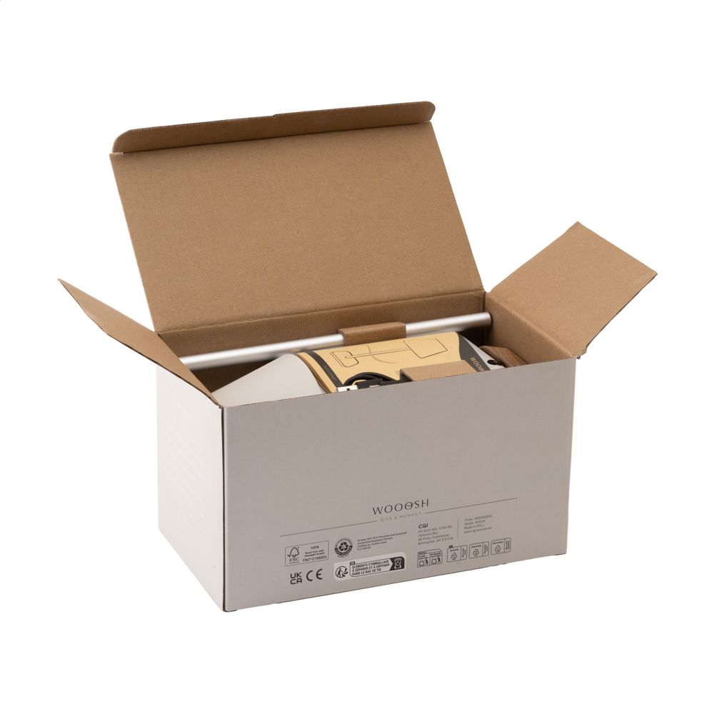 Oplaadbare tafellamp in een strak en stijlvol design van het merk Wooosh. Met een lichte aanraking van de bovenzijde zet je de lamp aan/uit en stel je de gewenste lichtsterkte van de LED-lamp in. Keuze uit gezellige sfeerverlichting of fel licht. Bepaal zelf de sfeer door het licht te dimmen. Om een trendy uitstraling te creëren, is gekozen voor een opvallende combinatie van materialen: FSC 100% gecertificeerd acaciahout, gerecycled aluminium en gerecycled kunststof. Na een oplaadtijd van 2 uur kun je de lamp maar liefst 12 uur gebruiken. Deze opvallende eyecatcher is geschikt voor gebruik binnen en buiten en brengt sfeer in elke ruimte. Input: 5V/1A. Inclusief ingebouwde 1800 mAh batterij, USB-C-oplaadkabel en gebruiksaanwijzing. RCS-gecertificeerd. Totaal gerecycled materiaal: 34%. Per stuk in een luxe Wooosh geschenkverpakking.