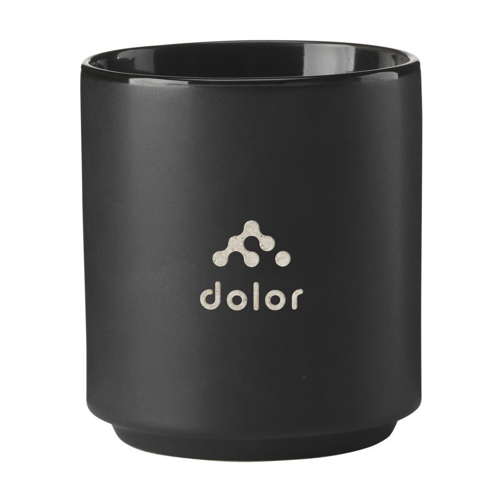Stapelbare mok zonder oor, in een tijdloos design. Van hoogwaardig keramiek. Afgewerkt met een matte buitenzijde en hoogglans binnenzijde. Geschikt voor de meeste koffieapparaten. Vaatwasserbestendig. De opdruk is vaatwasmachine getest en gecertificeerd: EN 12875-2. Inhoud 200 ml. OPMERKING: De witte mok kan niet worden voorzien van een lasergravure omdat deze onvoldoende zichtbaar is.