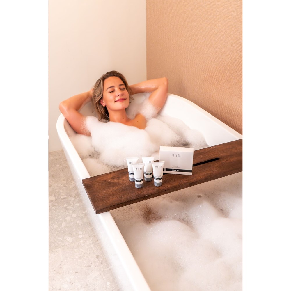 Reisset met 4 producten in de geur Black 22 van het merk JANZEN. Neem geluksmomenten mee op reis met deze vier mini’s. Inhoud: • Shower Gel - 40 ml • Body Lotion - 40 ml • Shampoo - 40 ml • Conditioner - 40 ml. Een handige set om ontspannen en goed voorbereid op vakantie te gaan. Alles binnen handbereik met een heerlijke geur. Een fris-warme geur, balancerend tussen licht en intens. Black 22 is een rijk bouquet van onder andere bergamot en hete kruiden, tropische schorsen en zoete tonkabonen – ook wel bekend als de ‘verboden vrucht’. Je bent helemaal klaar om op reis te gaan. Alle verzorgingsproducten in één doosje. Per set in een luxe Wooosh geschenkverpakking.