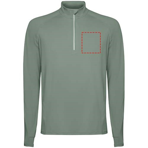 Technische raglan sweater met lange mouwen voor heren. Kraag met een halve rits en een omgekeerd ontwerp met reflecterende details. Verstevigde naden. Manchetten met duimopeningen. Reflecterende details op de achterkant. De zoom aan de achterkant is iets langer dan aan de voorkant. Warme geborstelde binnenstof.