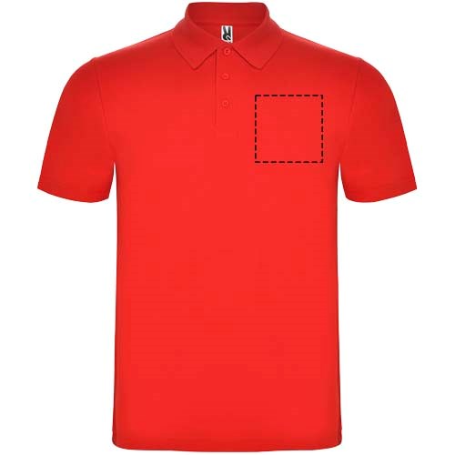 Poloshirt met korte mouwen, sluiting met drie knopen en 1x1 geribde kraag. Versterkte bedekte naden in de kraag. Verwijderbaar etiket. Het model is 190 cm en draagt maat L.