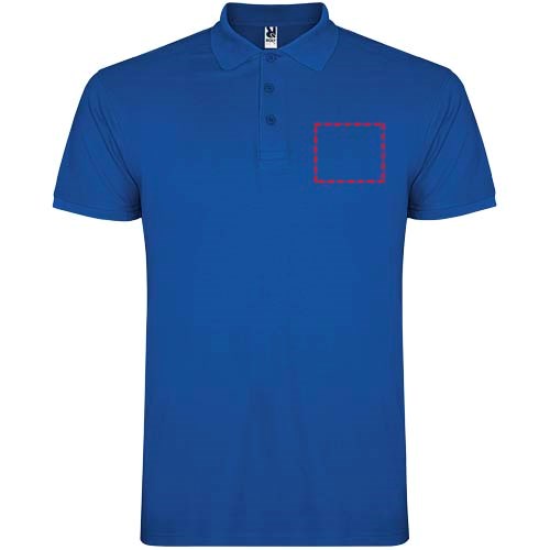 Poloshirt met korte mouwen voor kinderen. Versterkte bedekte naden in de binnenkant van de kraag. 1x1 geribde manchetten en kraag. Zijnaden. Knoopsluiting met drie knopen en zijsplitten. Optionele zak. Verwijderbaar etiket. Het model is 124 cm en draagt maat 5/6.