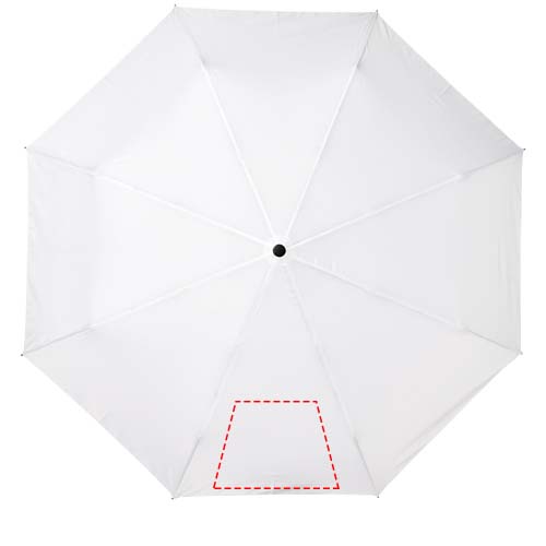 Automatische opvouwbare paraplu met een gerecyclede PET pongee polyester doek. Stevige metalen schacht en een hoogwaardig frame met glasvezel baleinen, die flexibiliteit bieden bij winderige omstandigheden. Samen met het houten handvat, de uiteinden en de gerecyclede PET pongee polyester doek is het een duurzamere keuze. Verkrijgbaar in een breed scala aan eigentijdse kleuren met een groot decoratieoppervlak op elk van de panelen.