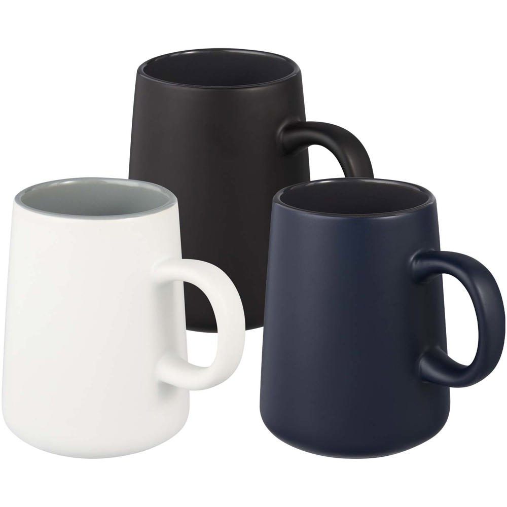 De keramische mok van Joe heeft een matte buitenkant met glanzende binnenkant en een rond en comfortabel handvat. Inhoud 450 ml Vaatwasmachinebestendig voor alle afdrukmethoden. Geleverd in een gerecycled kartonnen geschenkverpakking.