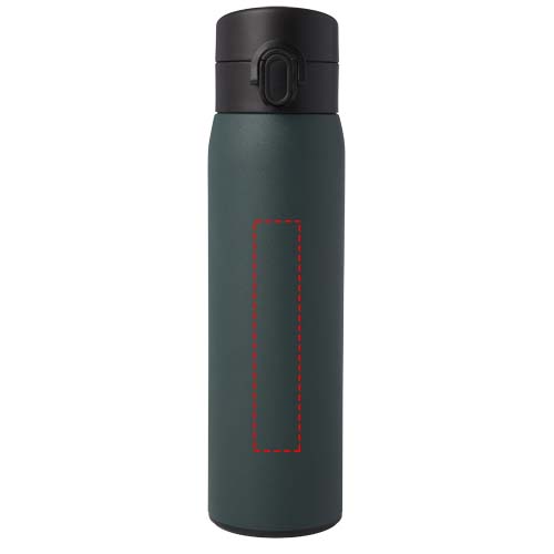 Stijlvolle, RCS-gecertificeerde, geïsoleerde fles van gerecycled roestvrij staal met een eenvoudig openingsmechanisme met knop. De fles is lekvrij en dankzij de koperen vacuümisolatie worden dranken enkele uren warm of koud gehouden. Inhoud 450 ml Gepresenteerd in een gerecyclede kartonnen geschenkverpakking.