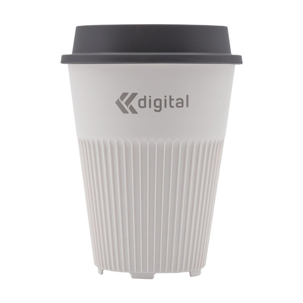 Herbruikbare koffie-to-go beker met deksel van het merk Circular&Co. Gemaakt van 100% recyclebaar, stevig PP. Deze stapelbare beker oogt niet alleen aantrekkelijk, het design legt ook de focus op functionaliteit. De ribbels verspreiden de warmte van de drank en zorgen voor een comfortabele grip. Daarnaast heeft de beker een quick-dry onderzijde. Het deksel met drinkopening voorkomt morsen. Past in de standaard drinkhouder van auto's, dus perfect voor onderweg, maar ook als beker bij de koffiemachine. Hét perfecte alternatief voor de wegwerpkoffiebeker. Deze beker gaat meer dan 500 wasbeurten mee en is tot 6 keer recyclebaar. Na slechts 2 keer gebruiken is de CO2-uitstoot van de koffie-to-go beker gecompenseerd ten opzichte van een alternatief voor eenmalig gebruik. Dit betekent dat enorme hoeveelheden CO2 onze atmosfeer nooit bereiken. Door over te stappen op een herbruikbare beker komen er miljarden bekers minder bij het afval terecht. Vaatwasserbestendig, alleen voor het bovenrek van de vaatwasser. Inhoud 340 ml.