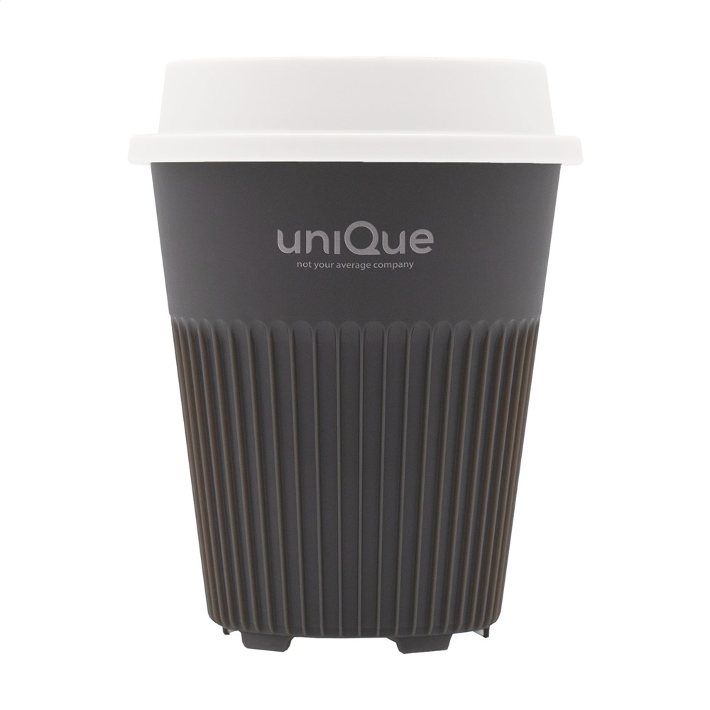 Herbruikbare koffie-to-go beker met deksel van het merk Circular&Co. Gemaakt van 100% recyclebaar, stevig PP. Deze stapelbare beker oogt niet alleen aantrekkelijk, het design legt ook de focus op functionaliteit. De ribbels verspreiden de warmte van de drank en zorgen voor een comfortabele grip. Daarnaast heeft de beker een quick-dry onderzijde. Het deksel met drinkopening voorkomt morsen. Past in de standaard drinkhouder van auto's, dus perfect voor onderweg, maar ook als beker bij de koffiemachine. Hét perfecte alternatief voor de wegwerpkoffiebeker. Deze beker gaat meer dan 500 wasbeurten mee en is tot 6 keer recyclebaar. Na slechts 2 keer gebruiken is de CO2-uitstoot van de koffie-to-go beker gecompenseerd ten opzichte van een alternatief voor eenmalig gebruik. Dit betekent dat enorme hoeveelheden CO2 onze atmosfeer nooit bereiken. Door over te stappen op een herbruikbare beker komen er miljarden bekers minder bij het afval terecht. Vaatwasserbestendig, alleen voor het bovenrek van de vaatwasser. Inhoud 340 ml.