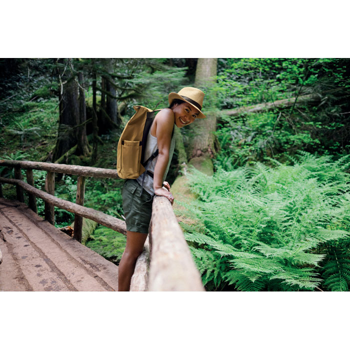 Papieren strohoed met zwarte polyester band. Bij onbedrukte bestellingen wordt de band los geleverd.