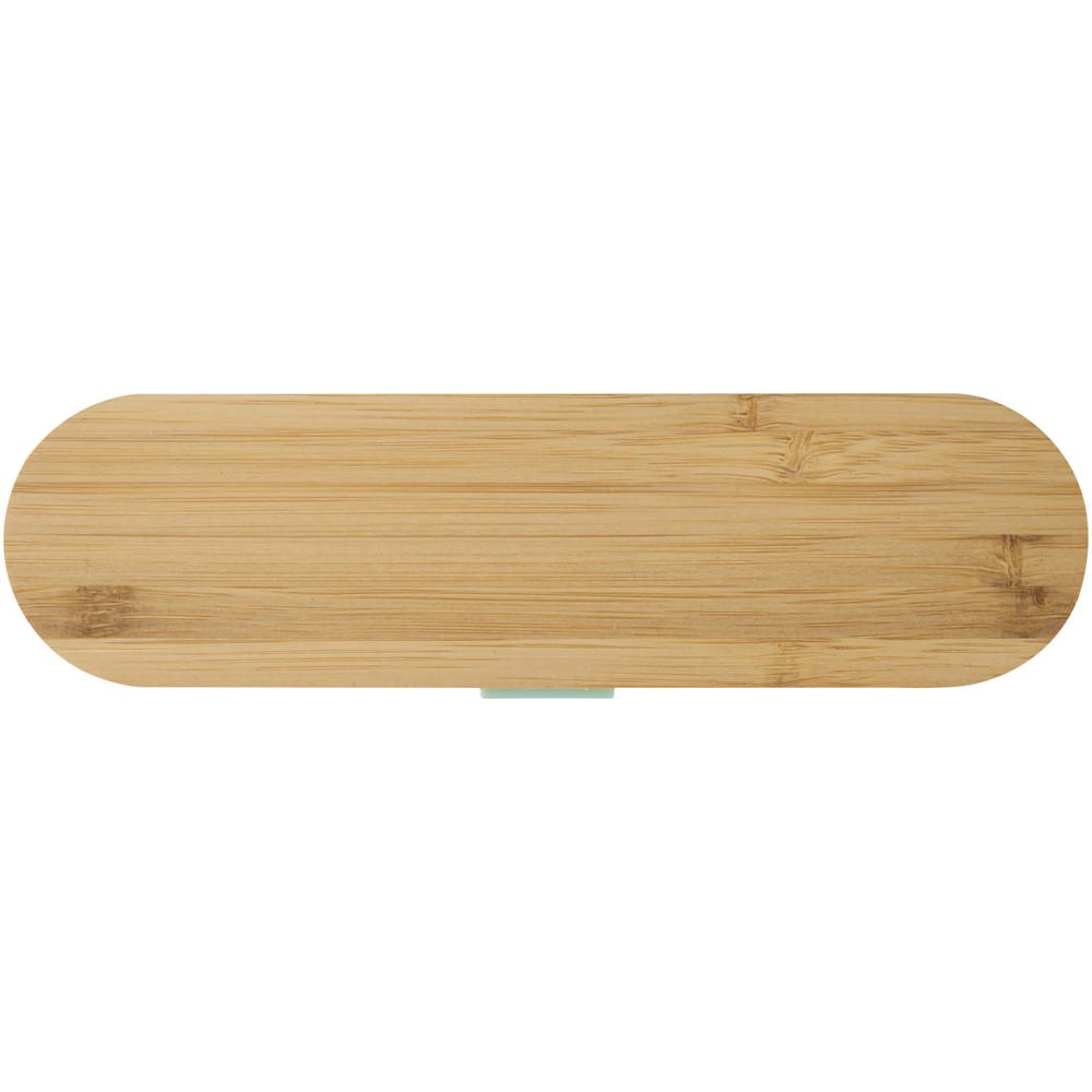 Een herbruikbare bestekset inclusief een vork, mes, lepel, rietje en rietjesreiniger - ideaal voor maaltijden onderweg. Compact en gemakkelijk schoon te maken, perfect voor broodtrommels, reizen of gebruik op kantoor. Wordt geleverd in een plastic opbergdoos met een bamboe deksel.