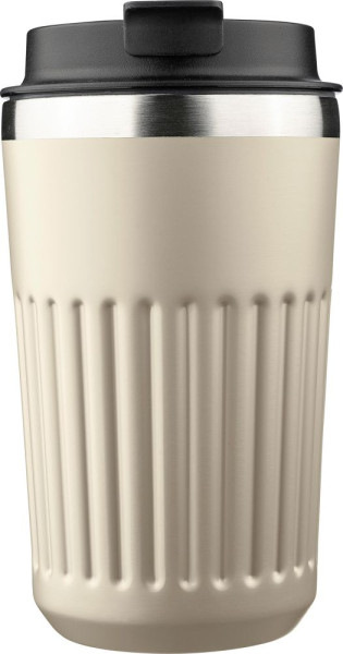 Reismok (400 ml) van gerecycled roestvrij staal met dubbele wand en ribbels aan de buitenzijde. De binnenzijde is van 304 roestvrij staal, de buitenzijde van 201 roestvrij staal. Voorzien van een PP-deksel. Per stuk verpakt in een bruine kartonnen doos. Afgewerkt met een gegraveerd gerecycled logo op het lichaam.