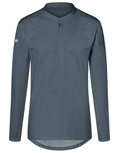 Voorkant: keperstof | Rug: jersey piqué, ademend, vochtregulerend | Lange mouwen | Passend model | Halslijn met smalle opstaande kraag en kleine knoopsluiting | Opgezette zak op linkermouw