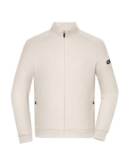 Interlockstof van hoge kwaliteit | Comfortabele mix van biologisch katoen, gerecycled polyester en elastaan | Opstaande kraag | Ritssluiting over de hele lengte | 1 zak met rits omzoomd met modieuze tape op de linkermouw | 2 zijzakken met rits | Elastische manchetten en tailleband