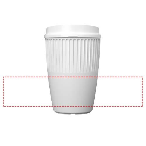 De Cirrus-beker van 350 ml bevat 50% Prevented Ocean Plastic – elke beker recycleert en hergebruikt 10 wegwerpplastic bekers die in Azië zijn ingezameld. De beker is een verfijnde en stijlvolle enkelwandige drinkbeker met isolerende ribbels voor een veilige en comfortabele grip. De beker is voorzien van een elegant klepdeksel met subtiel reliëf, waardoor de drinkopening gemakkelijk op de tast te vinden is. Zowel het deksel als de beker zijn gemaakt van volledig recyclebaar plastic. Geniet in alle comfort en stijl van je favoriete warme dranken.
